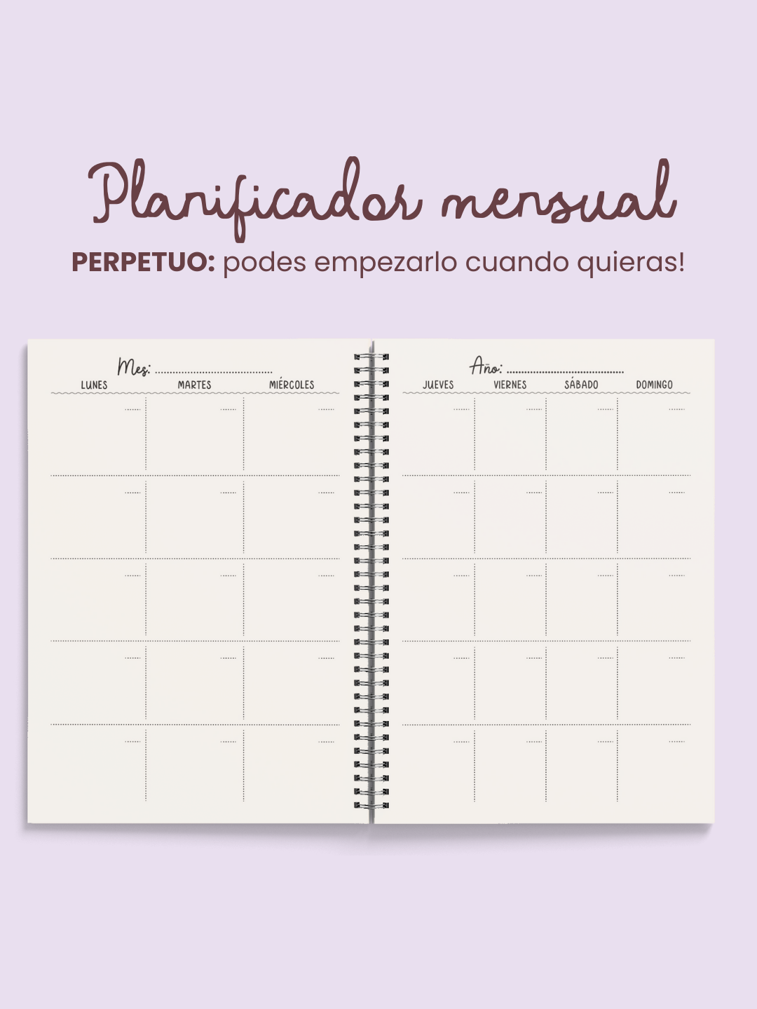 - Planificador mensual perpetuo para 12 meses (podes empezar la agenda el día/mes que quieras)