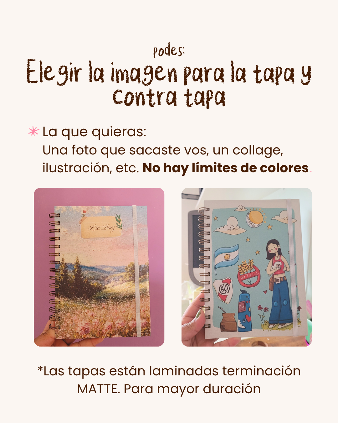 Es muy importante que después de realizar la compra nos envies por whatsapp (mail o instagram) los detalles de cómo querés tu cuaderno!